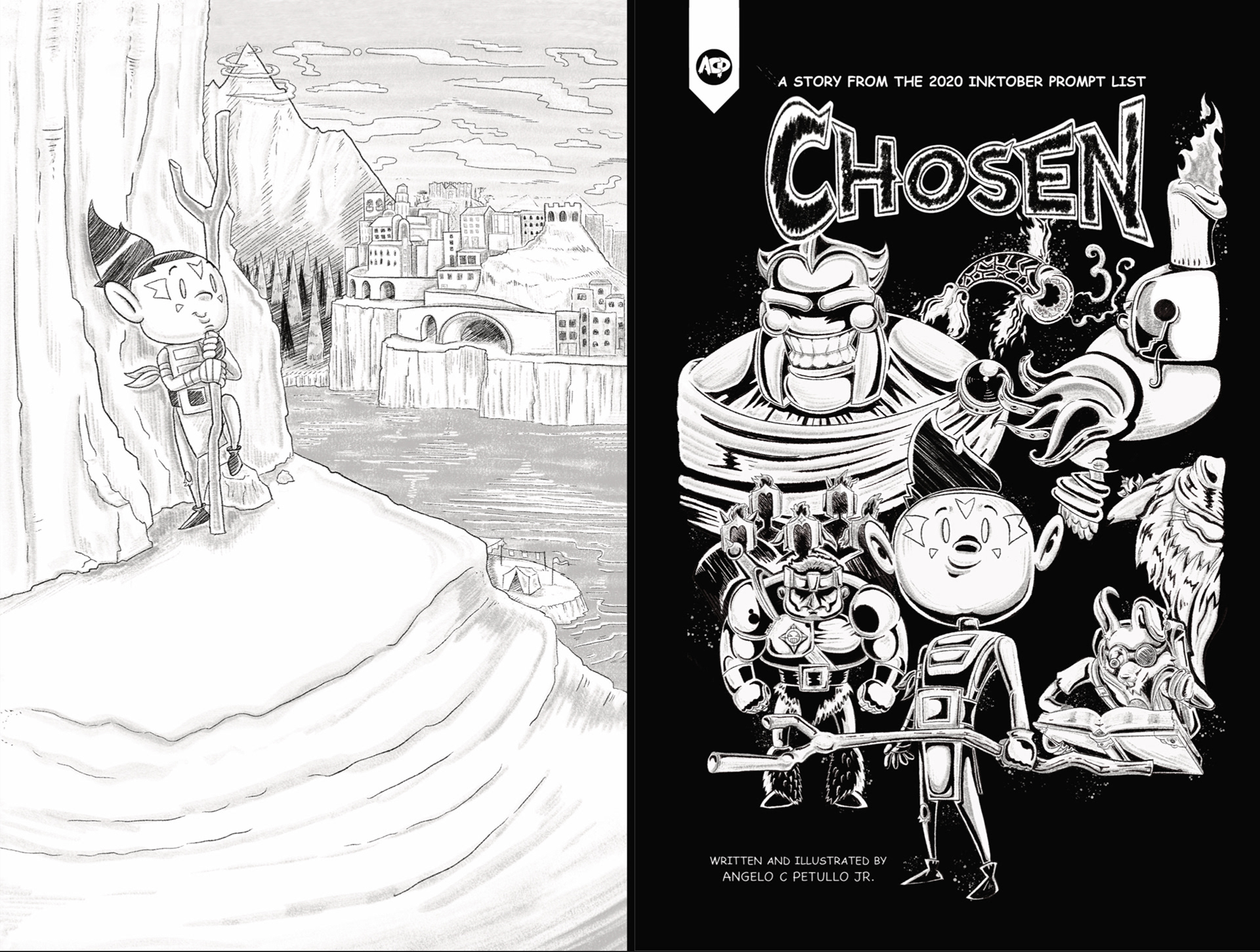 For this comic book, I created a fictional world and characters by using the Inktober 2020 prompt list. Inktober inspired me to create this world and characters that I always envision for a comic book.