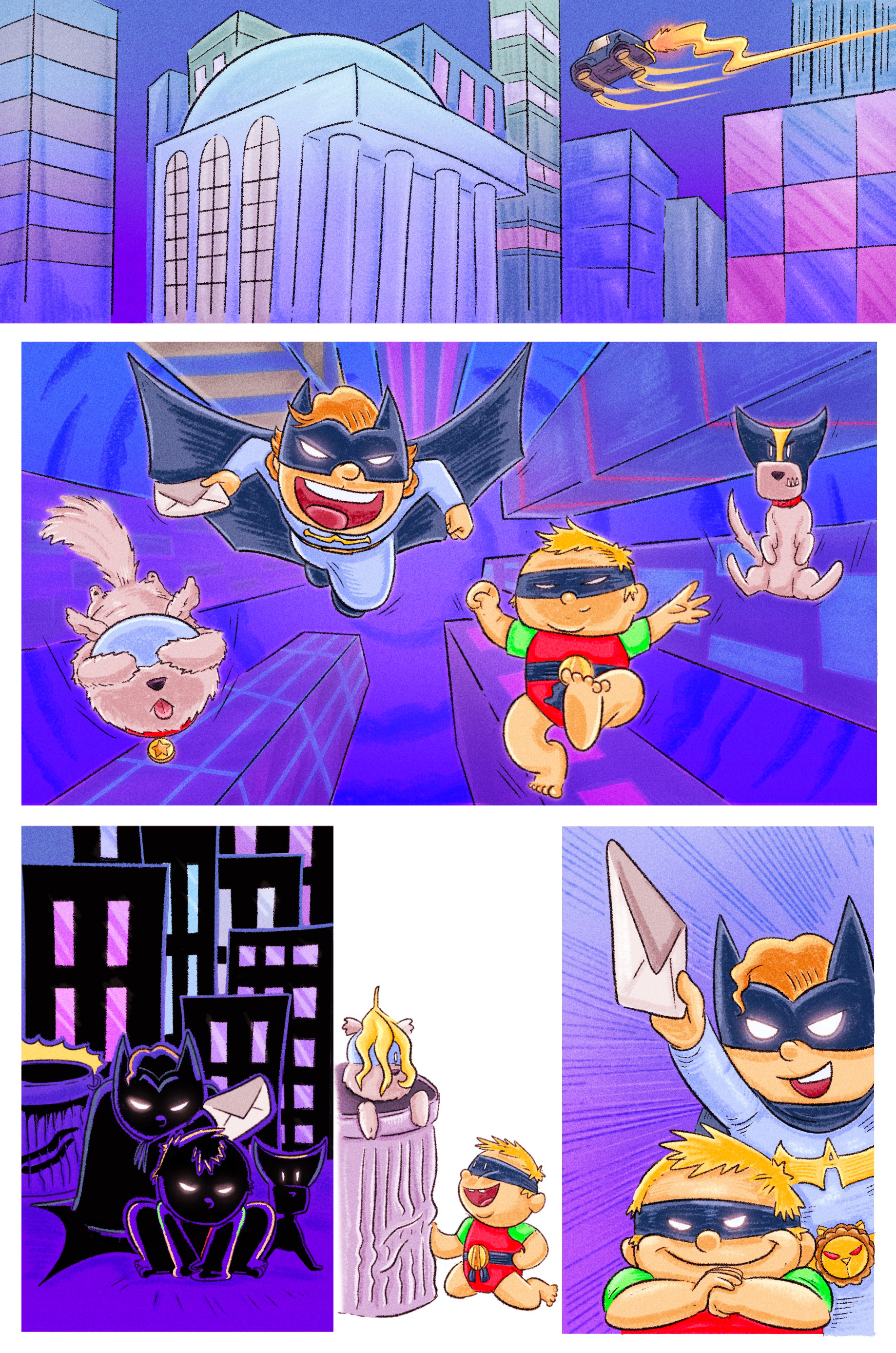 I grew up loving cartoons, comics, and pro wrestling—they sparked my imagination and inspired me to draw every day, developing my craft along the way. Eventually, I earned my BFA in illustration and graphic design from William Paterson University. These days, I specialize in comics, cartoons, and children’s book illustrations. I live in New Jersey with my family as a husband, father, and dog dad.